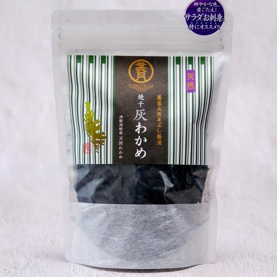 今別町袰月地区で復活された「焼干灰わかめ」は昭和30年代に新潟県から来た業者が作り方を伝え、買い取っていったものがはじめてで、当時の漁民が「だまされているのではないか」と疑うほどの高値だったと伝えられています。まだ赤く燃えさかる藁の中に採れたてのわかめを直接投入して、焼きながら灰をまぶす袰月地区独特の製法から「焼干灰わかめ」と呼ばれています。